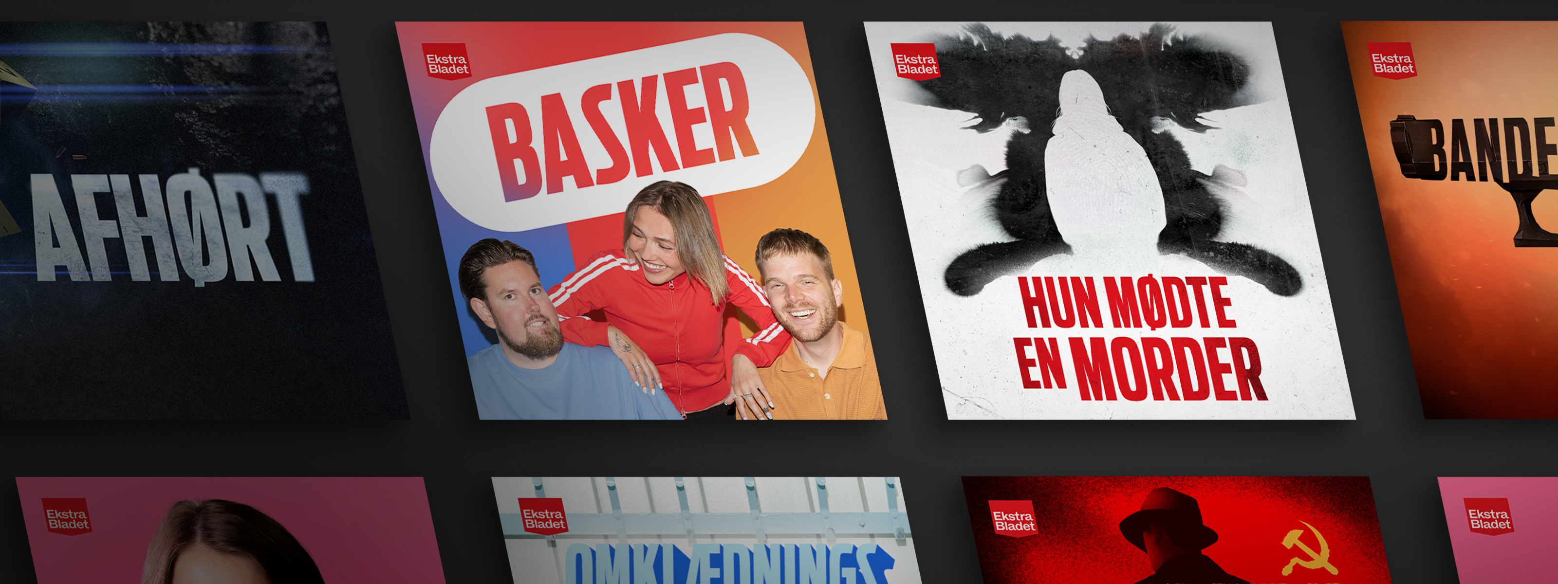 For Ekstra Bladet, we designed cover art for their growing and diverse podcast universe. Each podcast has its own voice – and that needed to shine through on the cover, whether the genre was true crime, current affairs, or sports.