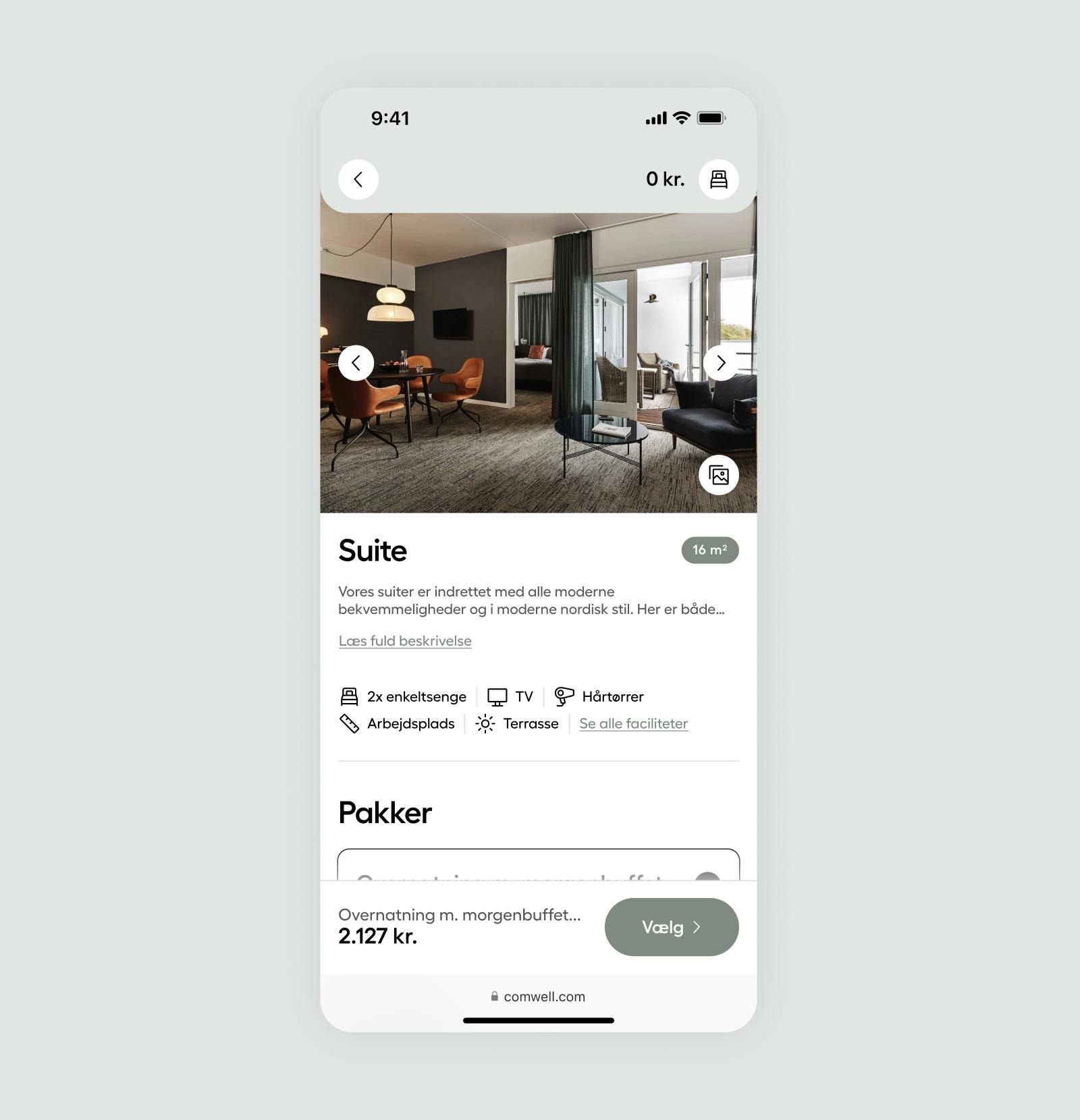 Tilsvarende er bookingflowet optimeret i forhold til hastighed og den forventede adfærd. Det er altid muligt at tilkøbe alt fra spa & gourmet til større værelse og sen udtjekning, men er du en kendt kunde, der booker et værelse, kan du stryge lige igennem bookingflowet med ganske få klik.