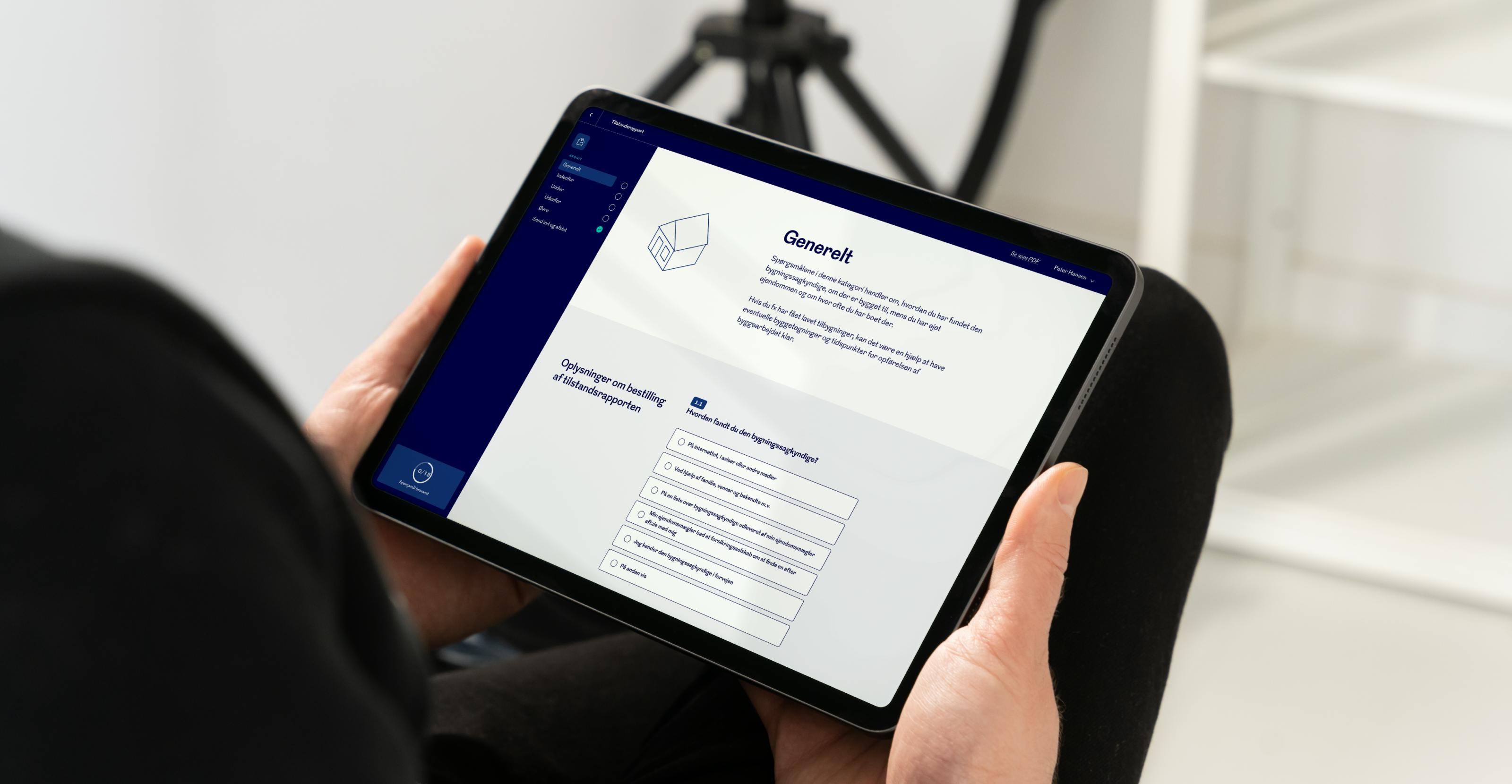 Designet er ”lidt til den tørre side”, og det er helt bevidst. Det skal ikke larme eller vække stærke følelser – det skal hjælpe brugeren igennem processen, et skridt ad gangen, også selvom man ikke hverken er bygningssagkyndig eller ”født digital”. Løsningen er udviklet i Laravel, og kunden administrerer løsningen i Laravel Nova. Frontenden er bygget i VueJS og NuxtJS og kommunikerer med backenden via private JSON restful API’er.