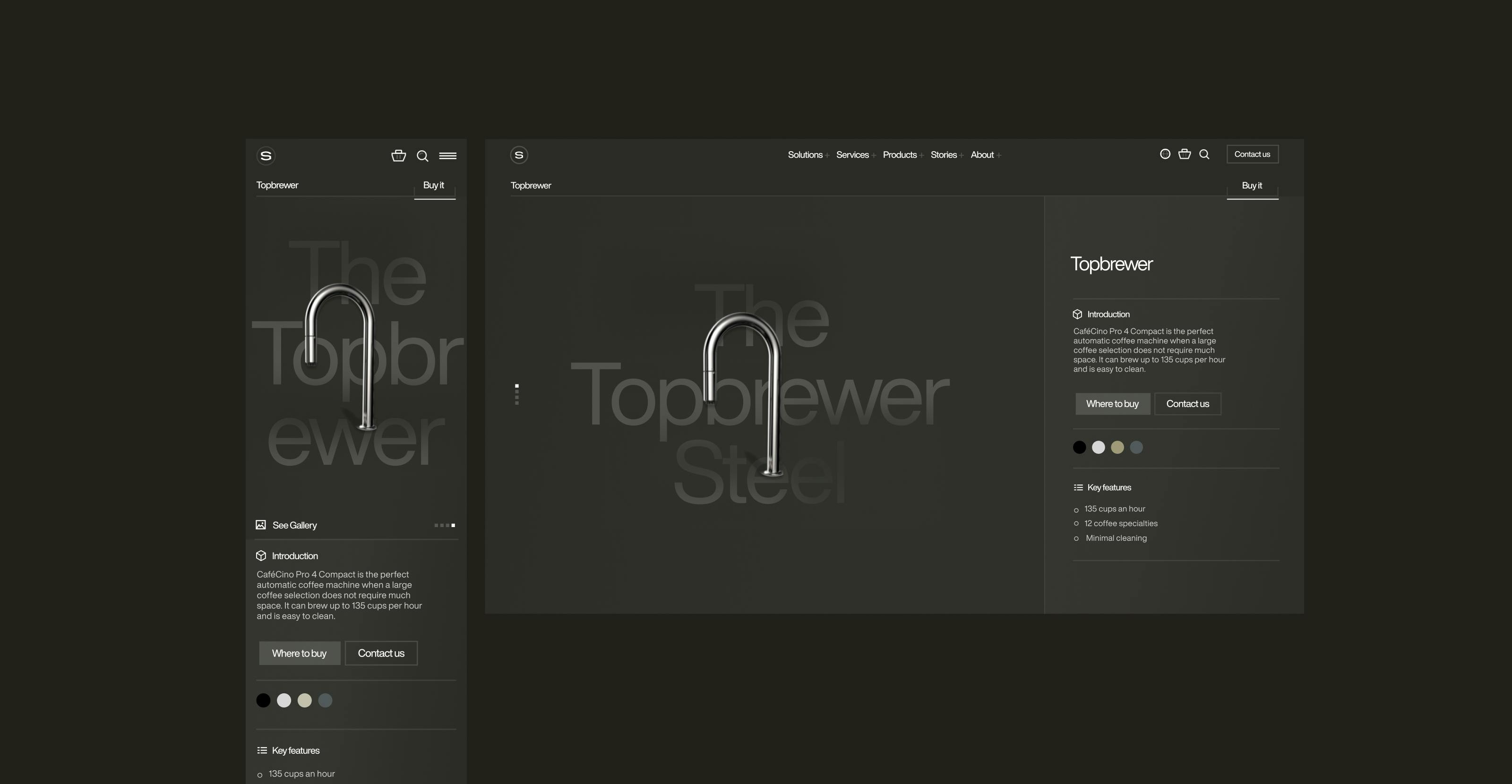 Hvis du nogensinde besøger Apples flagskibsbutik i NYC, Adobes EMEA's hovedkvarter i London eller L'Oréals hovedkontor i Paris og beder om en kop kaffe – vil den blive brygget på en af Scanomats high-end kaffemaskiner TopBrewer. Dwarf fik til opgave at skabe en ny digital platform for at rebrande og imødekomme Scanomats 32 verdensomspændende partnere.